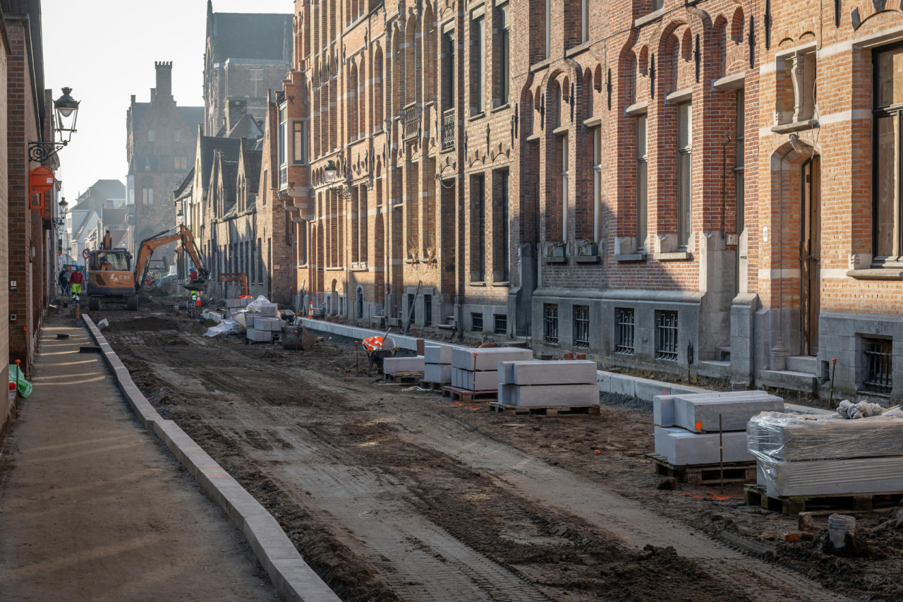 Fundering- riolering- en verhardingswerken in het centrum van Brugge